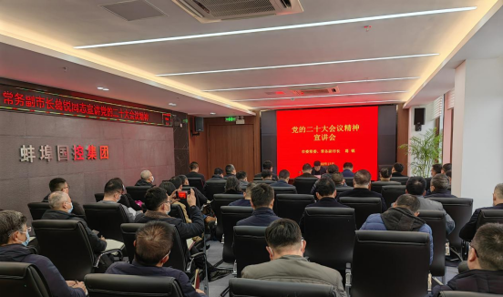 12月8日下午,蚌埠市委常委、常务副市长葛锐到集团宣讲党的二十大精神。集团党委书记、董事长陈建功主持会议,集团总部领导班子和中层管理人员,交投集团、水投公司、城开公司、建院集团、排水公司、粮食系统及汽运集团领导班子成员参加会议。
