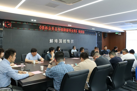 2023年5月30日下午,东兴证券债券业务二部负责人史超、债券业务总监王喆、胡昆霖来伟德国际1949进行债券业务及存续期督导业务的培训,集团财务部全体人员及交投集团、水投集团、建院集团、城开公司主要负责人、分管副总、财务或融资科室负责人参加培训。
