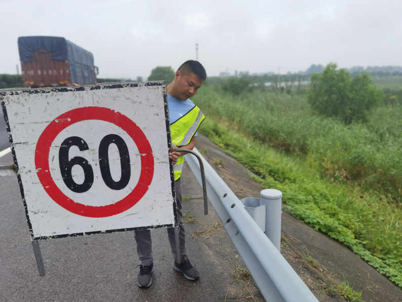 朱子桥在日常安全巡查中发现,养护施工中摆放的标志标牌受支架不稳、车辆横风等因素影响,极易倒覆,不仅威胁施工区域人员与设备安全,倒塌的标志牌也常被车辆碾压损坏,增加了维修成本。经过反复试验,他设计出一种结构简洁、使用省力的“Ω”型卡扣。该卡扣能根据标志牌版面尺寸,将其牢固锁定在护栏板上,既消除了安全隐患,也减少了标志牌的损耗与制作开支。
