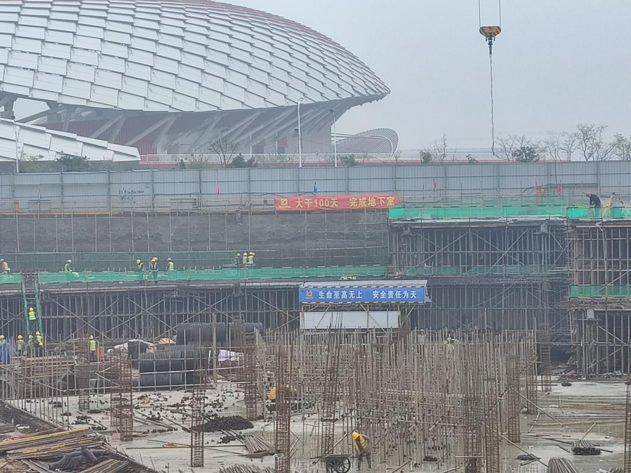 该项目年前因环保督查、大气污染治理、雨雪天气和马拉松活动影响等原因,导致施工现场多次停工,土方外运困难,造成工程进度严重滞后。年后,城开集团组织召开3月份复工复产工作会议,为了把耽误的时间抢回来,要求掀起大干高潮——“大干一百天,完成地下室”,营造大干的氛围。