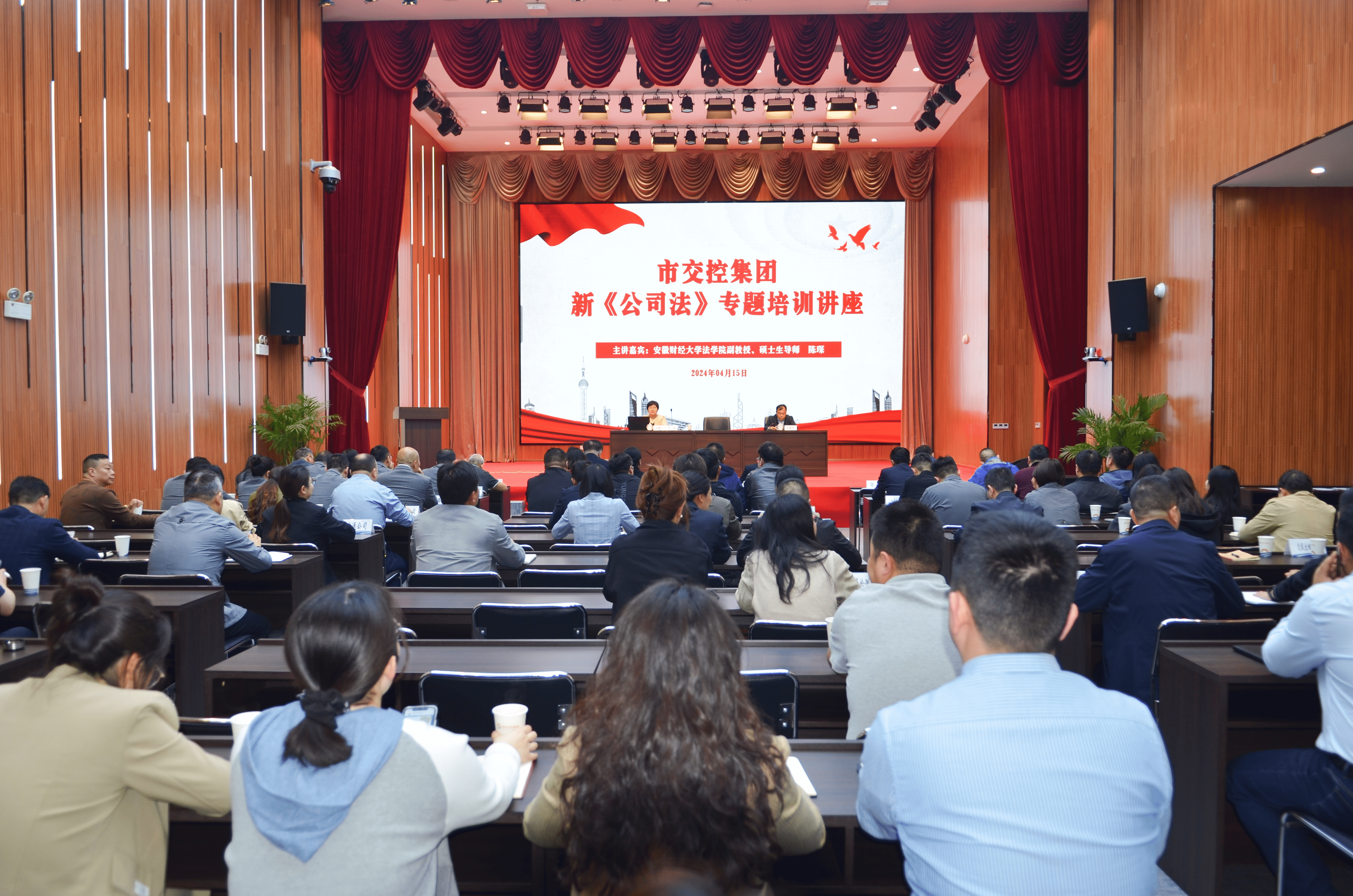 新《公司法》将于2024年7月1日起正式施行。为全面贯彻落实国家“八五”普法规划,及时掌握了解与企业经营发展息息相关的法律法规的变化和更新,提升全集团各级经营管理者“依法治企”的法律意识和素养,4月15日下午,交控集团开展新《公司法》专题培训,安徽财经大学法学院副教授陈琛应邀授课。集团党政领导班子成员、集团本部全体工作人员、司属全资控股企业行政班子成员及办公室、财务、人力资源、合规法宣负责人等参加培训。