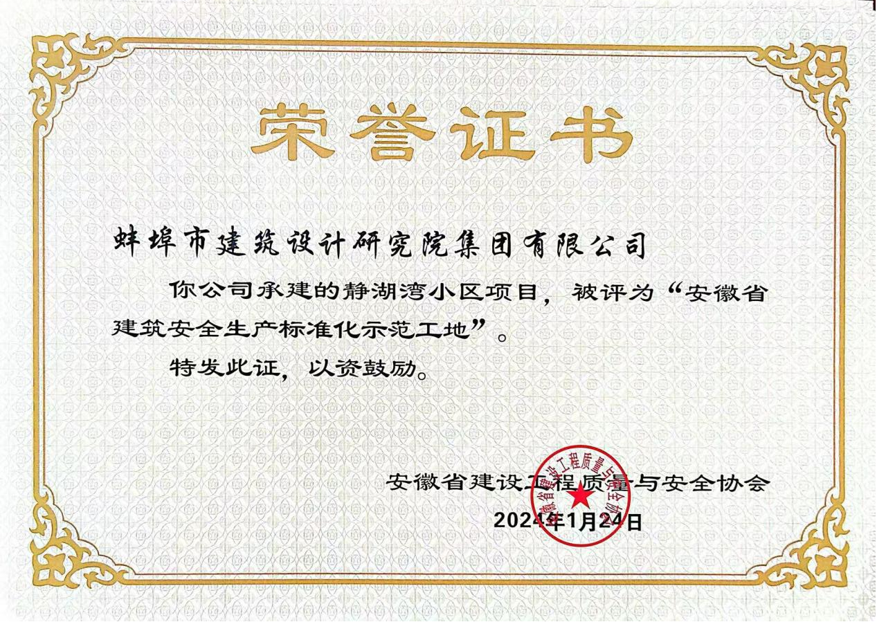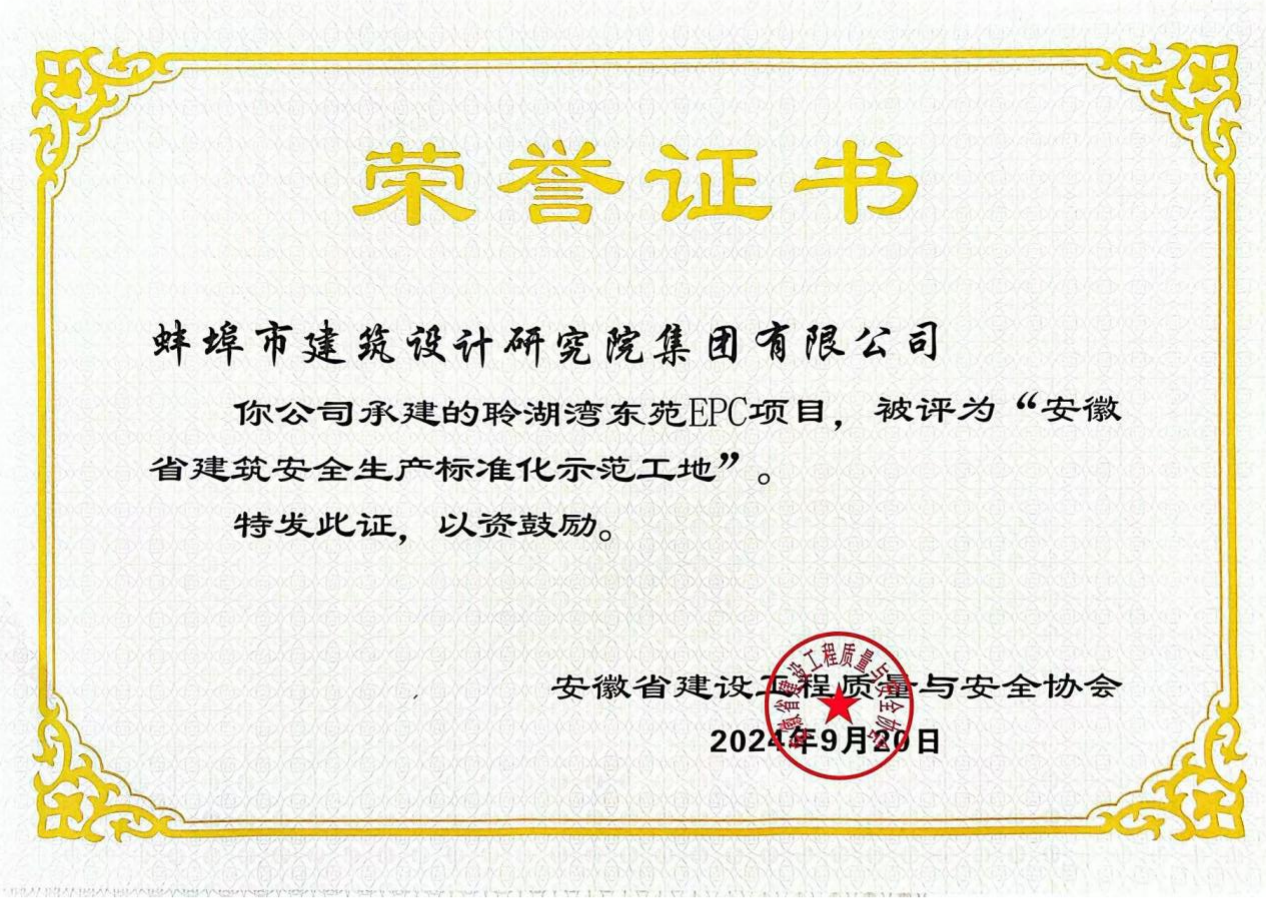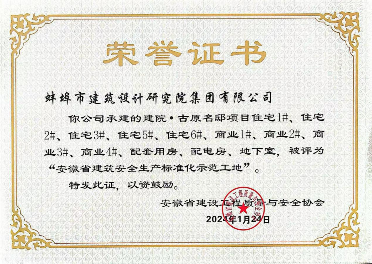 古原名邸、静湖湾和聆湖湾东苑Epc项目荣获“安徽省建筑安全生产标准化示范工地”称号