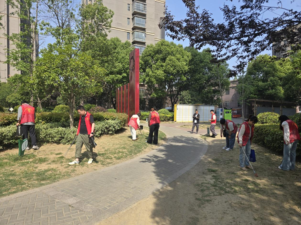 会议结束后,青年团员及志愿者们带着垃圾袋、垃圾夹等工具,前往和煦幸福城公租房小区开展“净美家园”捡垃圾志愿服务。活动中,大家分组清理草坪、步道周边的烟头、塑料袋、食品包装等垃圾,倡导“垃圾分类”“低碳出行”理念。
