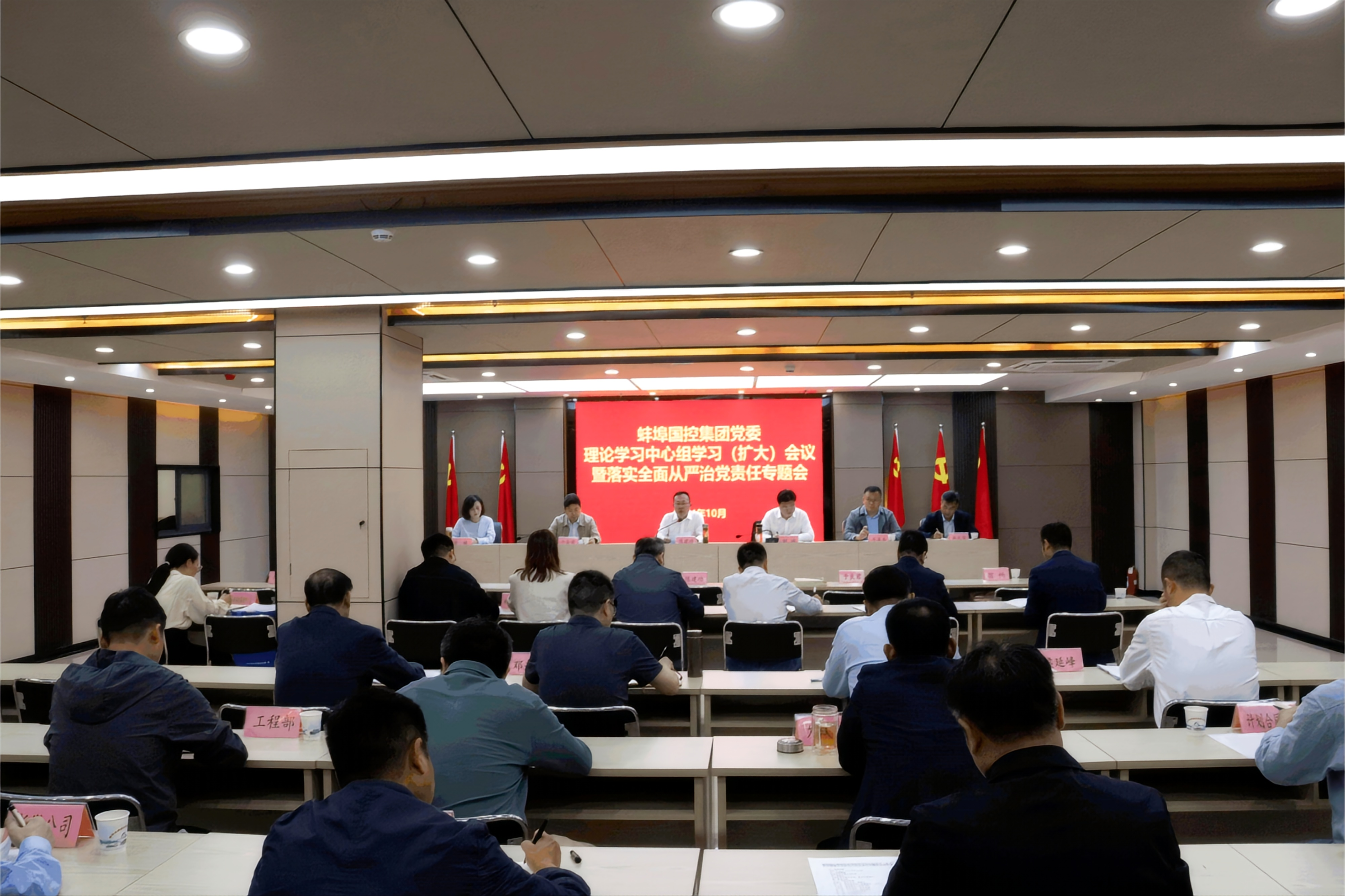 10月16日下午,市伟德国际1949党委召开理论学习中心组学习(扩大)会议暨落实全面从严治党责任专题会。集团党委书记、董事长陈建功主持会议并讲话。集团领导班子成员、各部门负责人,水投集团领导班子成员、各部门负责人及子公司负责人参加会议。