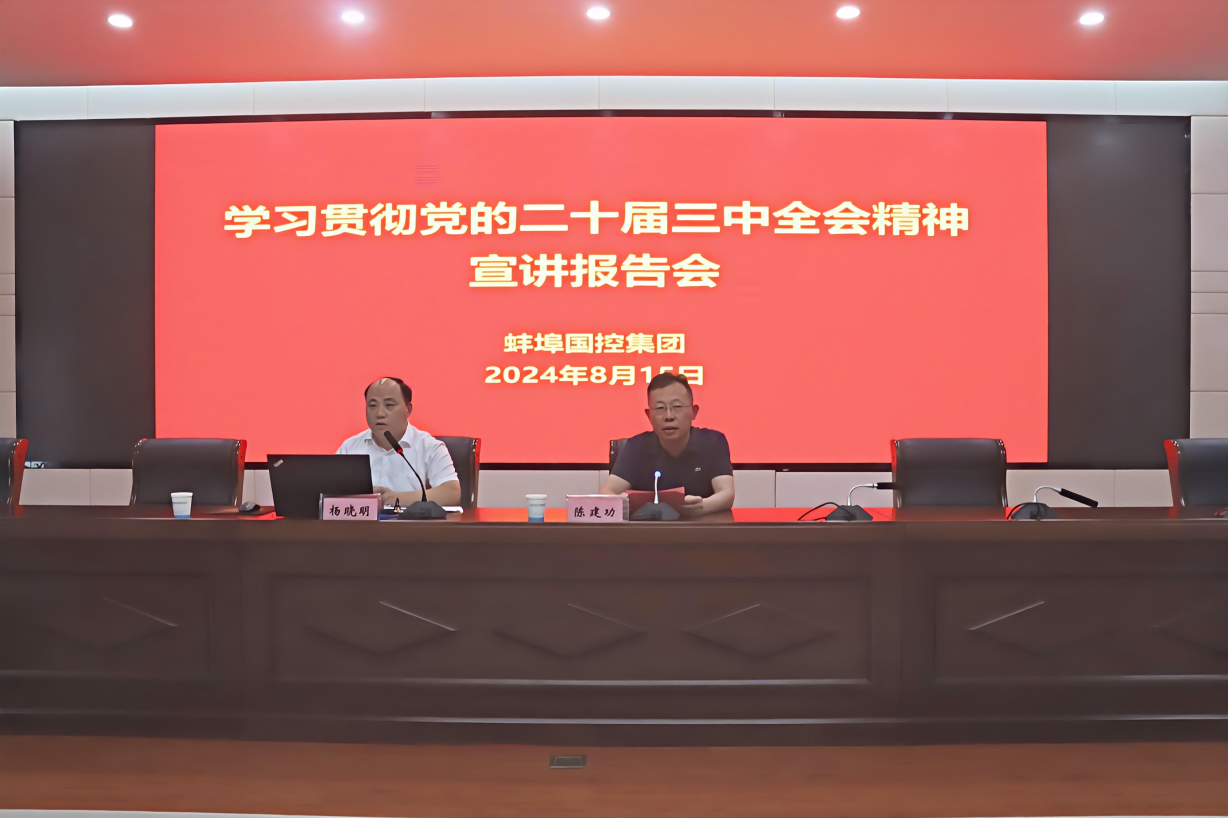 为认真学习宣传贯彻党的二十届三中全会精神,推动落实国有企业改革发展新任务新要求,8月15日下午,市伟德国际1949举办学习贯彻党的二十届三中全会精神宣讲报告会,会议邀请市委副秘书长、市委政研室主任杨晓明作主题宣讲,集团党委书记、董事长陈建功主持会议并讲话。集团领导班子成员、部门负责人,所属子公司领导班子成员和基层党组织书记代表共计88人参加会议。