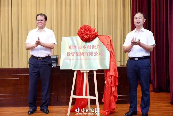 会上,市委副书记、怀远县委书记王庆武,副市长吴永彬共同为蚌埠市乡村振兴投资集团有限公司揭牌。